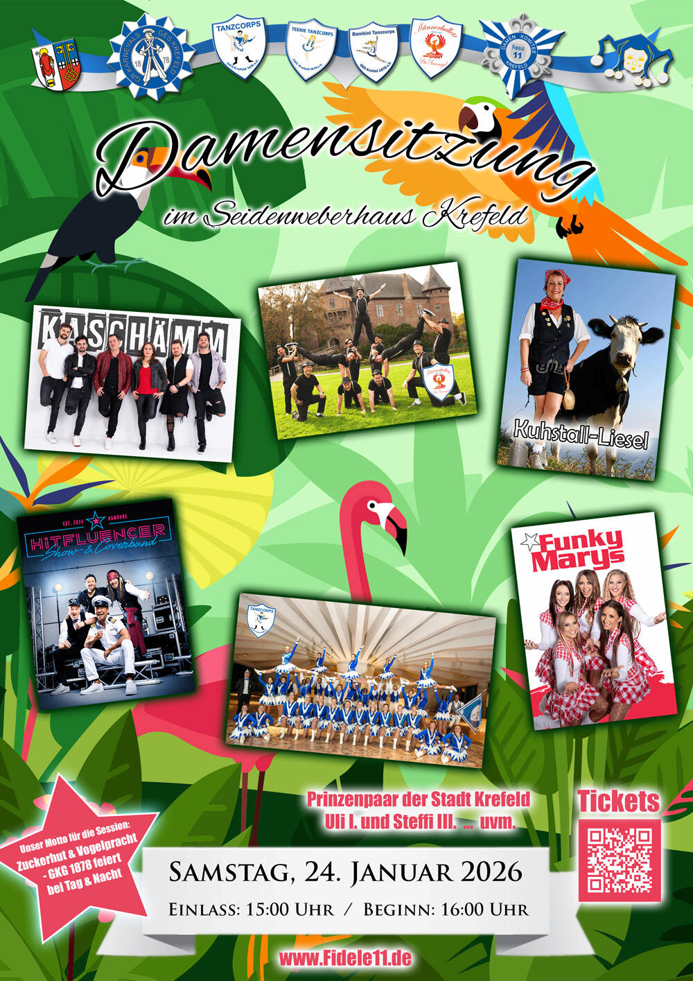Der jeweilige Sitzungspreis erhält einen Aufschlag um 1,- Euro für den Rosenmontags-Zug.
